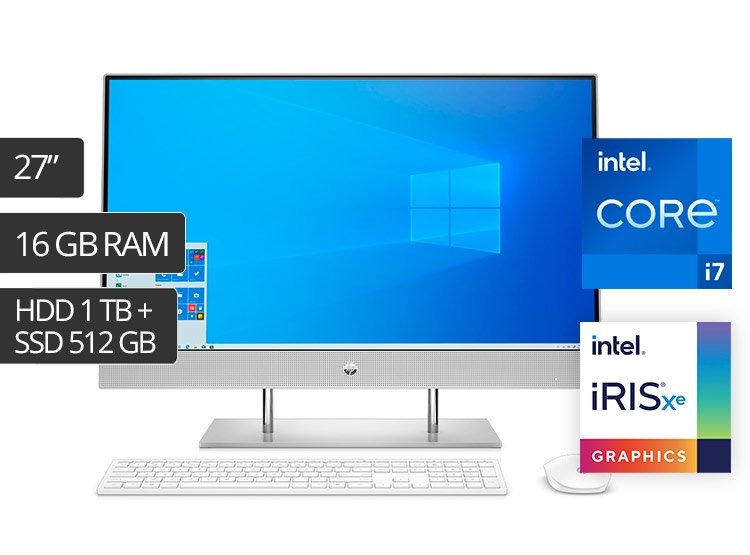 All-in-One HP 27-dp1002la, 27″ FHD IPS Touch, Core i7-1165G7 hasta 4.70GHz, 16GB DDR4, 2 discos