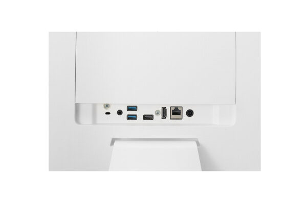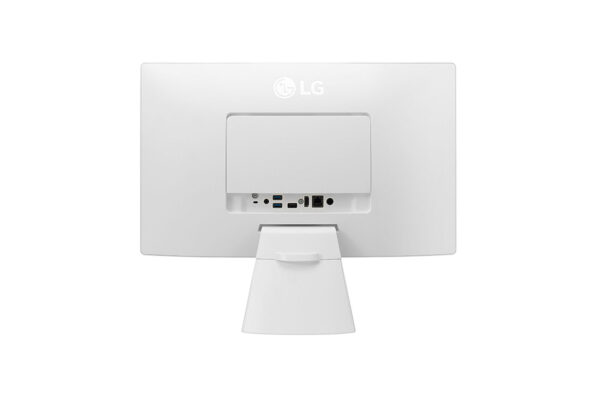 Es evidente que este tipo de equipos, y este todo en uno de LG tampoco es una excepción, siguen la misma línea en cuanto al diseño, posiblemente porque todo lo fundamental del mismo se encuentra tras su pantalla. En este caso la misma se sostiene gracias a un soporte en forma de “L” que se adjunta a la pantalla de una manera relativamente sencilla. Este soporte permite de una manera sólida y cómoda ajustar la pantalla hacia arriba o abajo.