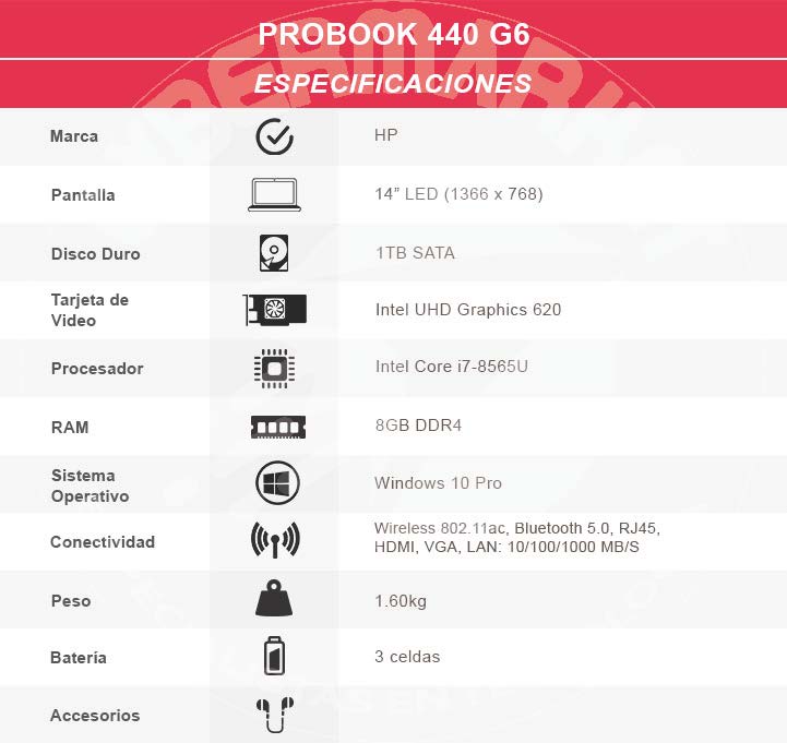 Laptop HP ProBook 440 G6, Core i7 8565U a 1.8GHz, 8GB RAM 1TB HDD Win10 Pro 64-bits